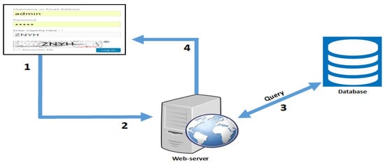 The approach illustrated in Figure 2 provides the basis of the experimental study presented in the next section. In the system model, (1) a text-based CAPTCHA is shown on the website’s log-in page. The user then enters their credentials and solves the CAPTCHA; (2) the request, along with the keystroke timing data, is sent to the authentication server; (3) the server checks the user’s details and compares them with the user’s profile in the database; and (4) the server grants access or rejects the user’s request. The following section details the proposed methodology for this study.