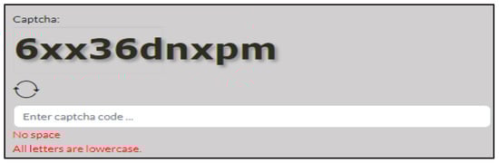 CAPTCHA technology has played a significant role as a defence mechanism, protecting Web security from malicious bot programmers across the Internet. It is one of the recognised shields used to distinguish between humans and computer programs (bots). CAPTCHA technology generates simple tests based on problems that humans can solve with ease but that are difficult for computers (i.e., artificial intelligence [AI]) []. When the right answer is received, it is, consequently, assumed that it was entered by a human, so the user is given access to the system []. CAPTCHAs exist on most websites and are mainly classified into four types: image-, audio-, video-, and text-based.