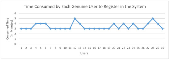 Despite the length of the CAPTCHA and its sevenfold repetition in the registration phase, as well as having to complete the log-in phase, most of the users solved the CAPTCHA within 3–5 min, as shown in Figure 9. This indicated that the proposed system was not overly complicated or laborious.