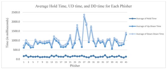 Figure 12 shows the average hold time, UD time, and DD time for all phishing attempts to gain unauthorised access to the system. It should be noted that the system recorded the timestamp in milliseconds, as mentioned previously. The results prove the effectiveness of the proposed system for preventing phishing attacks.