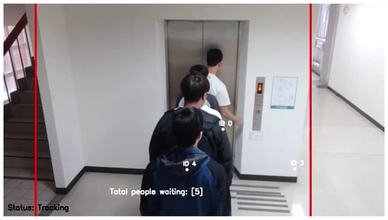 Elevators are essential in tall buildings, as they allow people to move quickly between floors and significantly reduce travel time. In order to improve elevator efficiency, many researchers, such as Atsuya Fujino et al. [] and Aljoša Vodopija et al. [], have focused on solving elevator scheduling problems. Although good elevator scheduling can reduce waiting times, there is still room for improving the user experience. For example, existing elevator systems lack the ability to display the number of people waiting on each floor and inside the elevator. This causes an inconvenience as users cannot tell if they should wait or seek alternatives, leading to unnecessary time wastage. Tomoki Yamauchi et al. [] pointed out that not knowing the elevator occupancy in advance causes longer wait times for disabled individuals and those carrying large items. If users are aware of elevator occupancy, they can make better choices between using elevators or alternative ways to reach their destination, thereby reducing the waiting time. Therefore, having a real-time system for providing the numbers of people inside the elevator and waiting on each floor to those waiting for elevators is crucial.