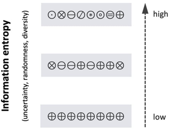 Broadly, entropy is a measure of the state of disorder, randomness, or uncertainty in a system. Definitions span multiple scientific fields, and the concept of ‘order’ can be somewhat subjective. However, for the purpose of this work, we are concerned with information entropy. In terms of physics, for example, the configuration of the primordial universe has the lowest overall entropy since it is the most ordered and least likely state over a longer timeframe. We can consider entropy as the number of configurations of a system. It may also be viewed as a measure of the lack of information in a system. In the context of information theory, entropy was first described by Shannon in his seminal 1948 paper [], which provides a mathematical framework to understand, measure, and optimise the transmission of information. Shannon formalised the concept of information entropy as a measure of the uncertainty associated with a set of possible outcomes: the higher the entropy, the more uncertain the outcomes.