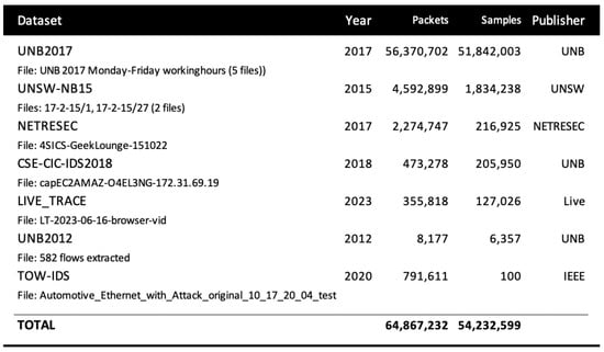 Machine learning is a powerful tool in cybersecurity, particularly in its ability to detect anomalies, and cybersecurity researchers in network threat identification and intrusion detection are particularly interested in the analysis of large network packet and flow datasets. A survey of the composition of publicly available intrusion datasets is provided in [].
