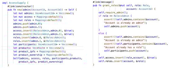 In this section, we delve into the creation and implementation of a robust smart contract using ink! 0.4. The smart contract is the backbone of the system, incorporating different data structures to handle admin roles, participant engagement, product information, and access control. Role-based access control (RBAC) is utilised to define the roles of different entities. The data structures are carefully chosen to ensure data integrity and the traceability of a product’s life cycle.