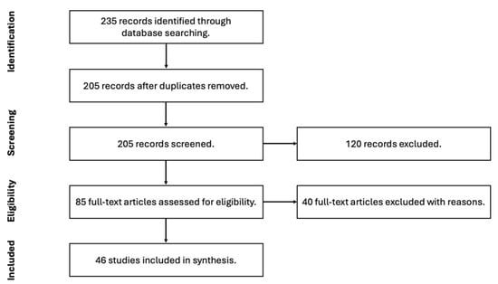 PRISMA Phase: “Included”. The papers were studied further, and one more highly relevant study was found in their citations and added to the selected studies. Therefore, the final number of the studies was 46 (Figure 3).