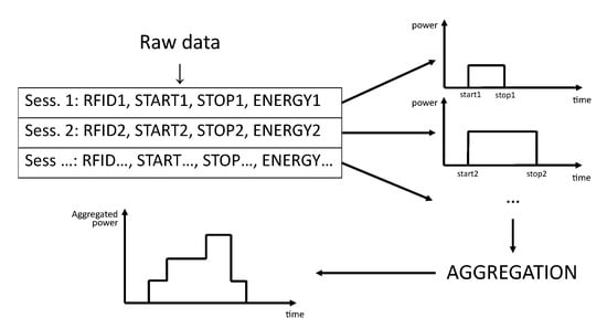 From raw data to aggregated EV charging power profile.