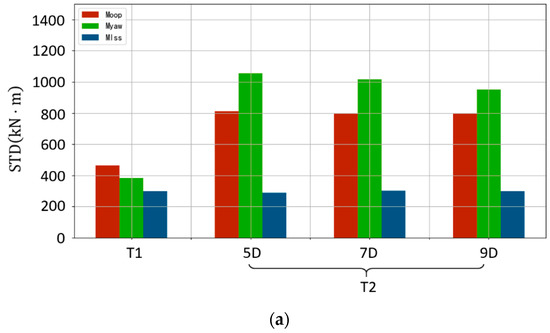 Aerodynamic loads standard deviation (STD) of upstream and downstream wind turbines under two atmospheric conditions. (a) STD bars for NBL; (b) STD bars for CBL.
