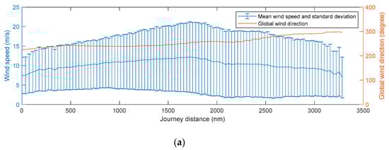 An accurate definition of the weather condition is essential to estimate realistic ship behavior and trustable results. The process to generate the environmental conditions starts from average weather data source provided by [28]. It is based on global historical data from 1983 to the present. It is defined in a grid of 0.5 × 0.5 degrees covering all of the surface of the planet, and it gives the result for each month of the year. Within this data source, it is defined as the mean value and the variance of wind speed and direction, solar radiation, and temperature.