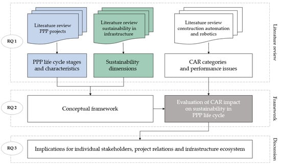 Therefore, three central research questions are addressed in this paper: (1) What are the major emerging research streams and key factors in PPP projects, CAR, and sustainability assessments? (2) How does CAR influence sustainability in the context of PPP projects? (3) What are the implications for stakeholders on a firm, project and ecosystem level?
