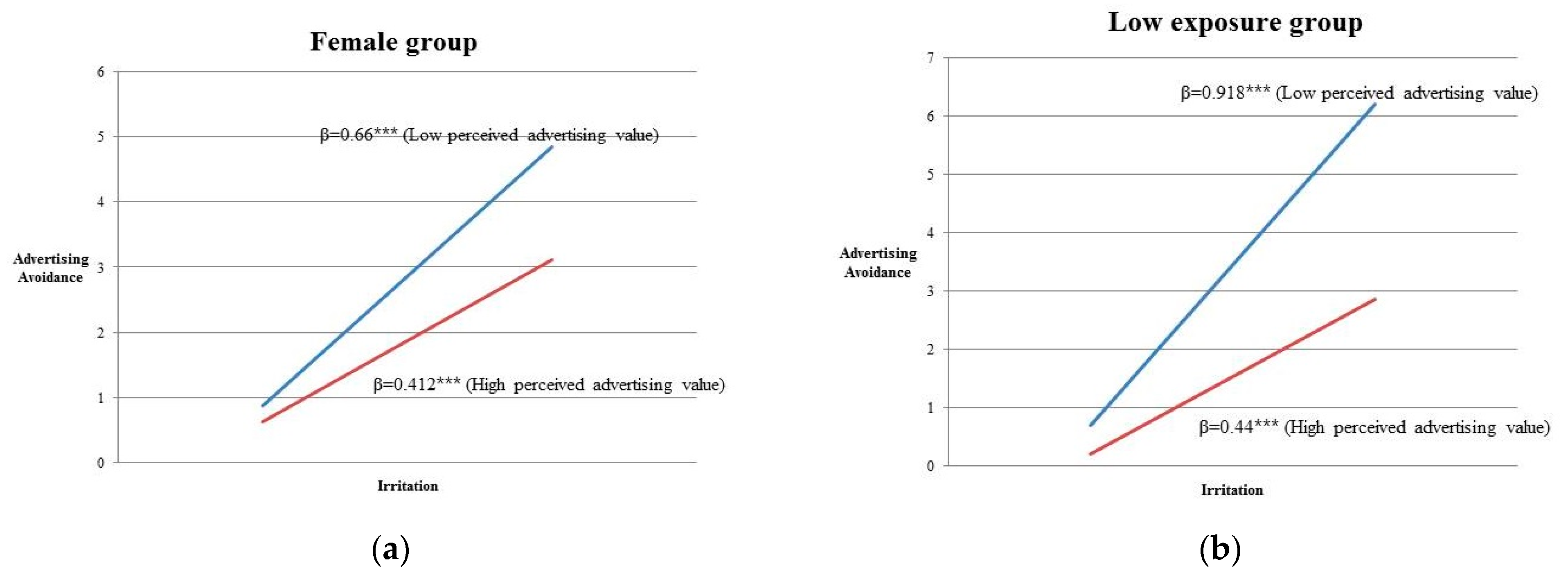 | Low perceived advertising value (−1 s.d.) | 0.278 *** | 0.660 *** | 0.058 | 0.183 *** | 0.242 *** |