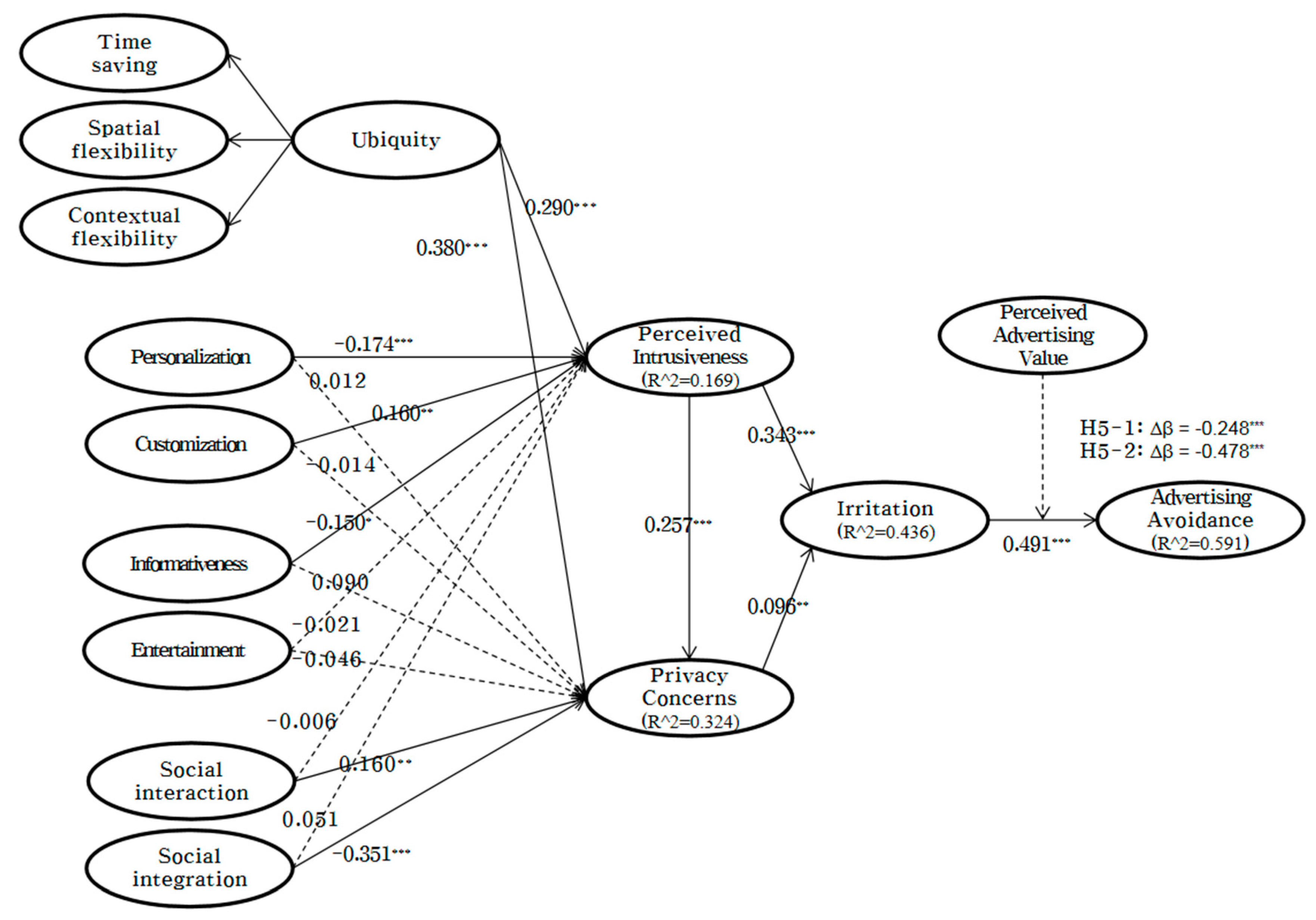 | Variables | Perceived Intrusiveness | Privacy Concerns | Privacy Concerns | Irritation | Advertising Avoidance | Advertising Avoidance |