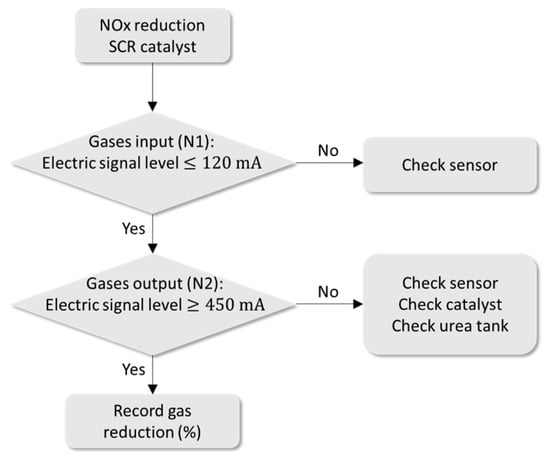 Figure 10 presents the flowchart for evaluating catalyst failure by monitoring the reduction of NOx gases.