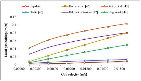 Comparison of gas holdup experimental data with empirical correlations [,,,,].