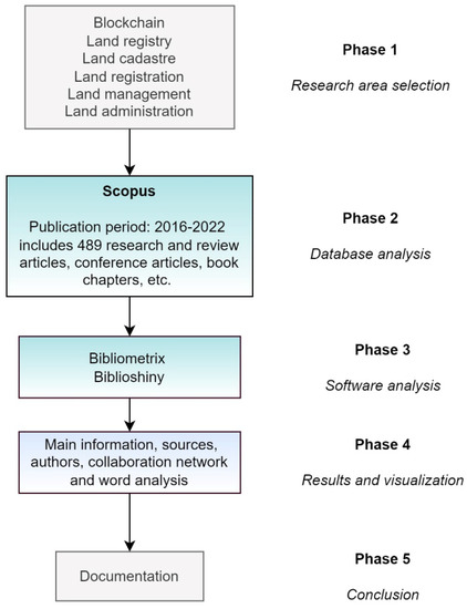 The first phase included defining the direction of the research and the selection of keywords by which the existing databases of scientific articles will be searched. The application of blockchain technology is interesting in many ways, but what certainly raises many scientific questions is how to fit it into existing land management systems and what advantages and disadvantages it would have. The improvement of land management and land management systems are topics that are often represented in scientific and professional literature. While more developed countries mostly work on automating and speeding up the process of implementing changes in land registers, less developed countries, as well as a large number of developing countries, still struggle with inefficient and non-transparent systems and systems which its users do not trust. In response to such requests, various recent research can be found that are based on examining the possibilities and ways of using blockchain technology in land management, which also includes the management of land registers. By comparing traditional land registry systems with those based on blockchain technology, it was determined that blockchain systems can provide some additional advantages, such as the impossibility of unauthorized changes to already entered data, data transparency and the reduction or complete exclusion of centralized decision-making, all for the purpose of building a system in which citizens will have confidence. At the very beginning of consideration of the advantages and ways of implementing blockchain technology into the existing systems of a country, it is necessary to determine how the introduction of new technology would improve existing processes and whether it is necessary at all, especially referring to already-established user trust systems. Countries with up-to-date land registers noticed the advantage of the automation of existing systems that reduce the time required to manage a dynamization of land systems, as well as reducing the costs in existing administrative bodies. In the case of undeveloped countries and some parts of developing countries, the disorganization of existing data on land is particularly noteworthy. The inconsistency of cadastre and land registry, non-uniformity of recorded and real time data, inefficiency and sluggishness of the system, corruption, manipulation and lack of quality are some of the key facts that indicate that the current situation requires radical changes []. The research is a review of the existing scientific literature in the Scopus database, on the mentioned topic. The objectives would include the research of the direction and dynamics of the implementation of blockchain technology in existing systems, with advantages and disadvantages highlighted.