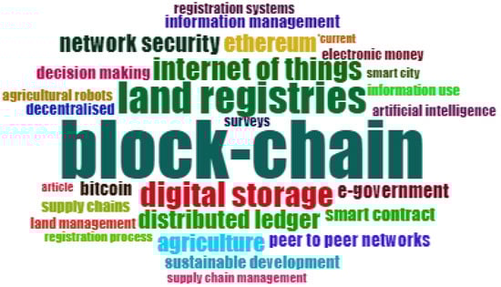 A Global South state, India, has the most papers published (89) of all countries. That number is almost double that of the second country, the USA (50). In India, there is a significant increase in interest in the topic at the scientific level. According to Müller and Seifert (2019) [], it could be seen that they are trying to implement it, in some form, at a state level also. Other Global South countries are not even close to India’s activities. Saudi Arabia has 20 papers published. This is followed by Bangladesh, Malaysia, Pakistan, Iran and the United Arab Emirates, a country that looks closest to BC implementation at a state level, at least in Dubai. Ghana has a few papers and is reporting still some activities at a state level, etc. The main topics needed to be solved in Global South are fraud and a lack of transparency, and also in some countries, there is almost no documentation of the real estate at all (for instance, the Ghanaian case of 80% of property not being registered).