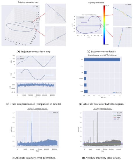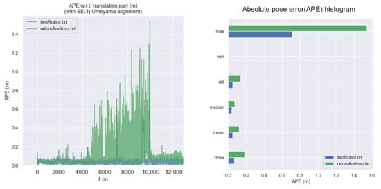 The results of the comparison of the IMU fusion Odom strategy and the methods in this study by the EVO evaluation tool are presented in Figure 21.