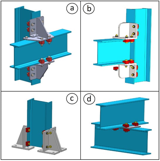 Among the removable and reconfigurable steel connections, the following can be mentioned (this group also includes clamp-based connections, but a separate section will be dedicated to them since they are the main objective of this state-of-the-art review).