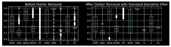 Unattainable or insufficient observations were eliminated from the chosen log curve before training with the selected model. The splitting of data over three standard deviations (SD) from the data average was considered to be an outlier. The outlier was removed with the SD filter’s help, and the SD result is shown in Figure 6. The pair plot with and without removing the outlier are shown in Figures S1 and S2, respectively.
