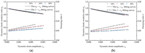 - Soil temperature is one of the most important factors. With a decrease in soil temperature, the dynamic elastic modulus ratio, maximum dynamic elastic modulus and reference dynamic strain amplitude of frozen silty clay show an increasing trend, while the damping ratio has a decreasing trend. Moreover, the dynamic elastic modulus ratio and damping ratio tend to change gently with the dynamic strain amplitude when the soil temperature increases;