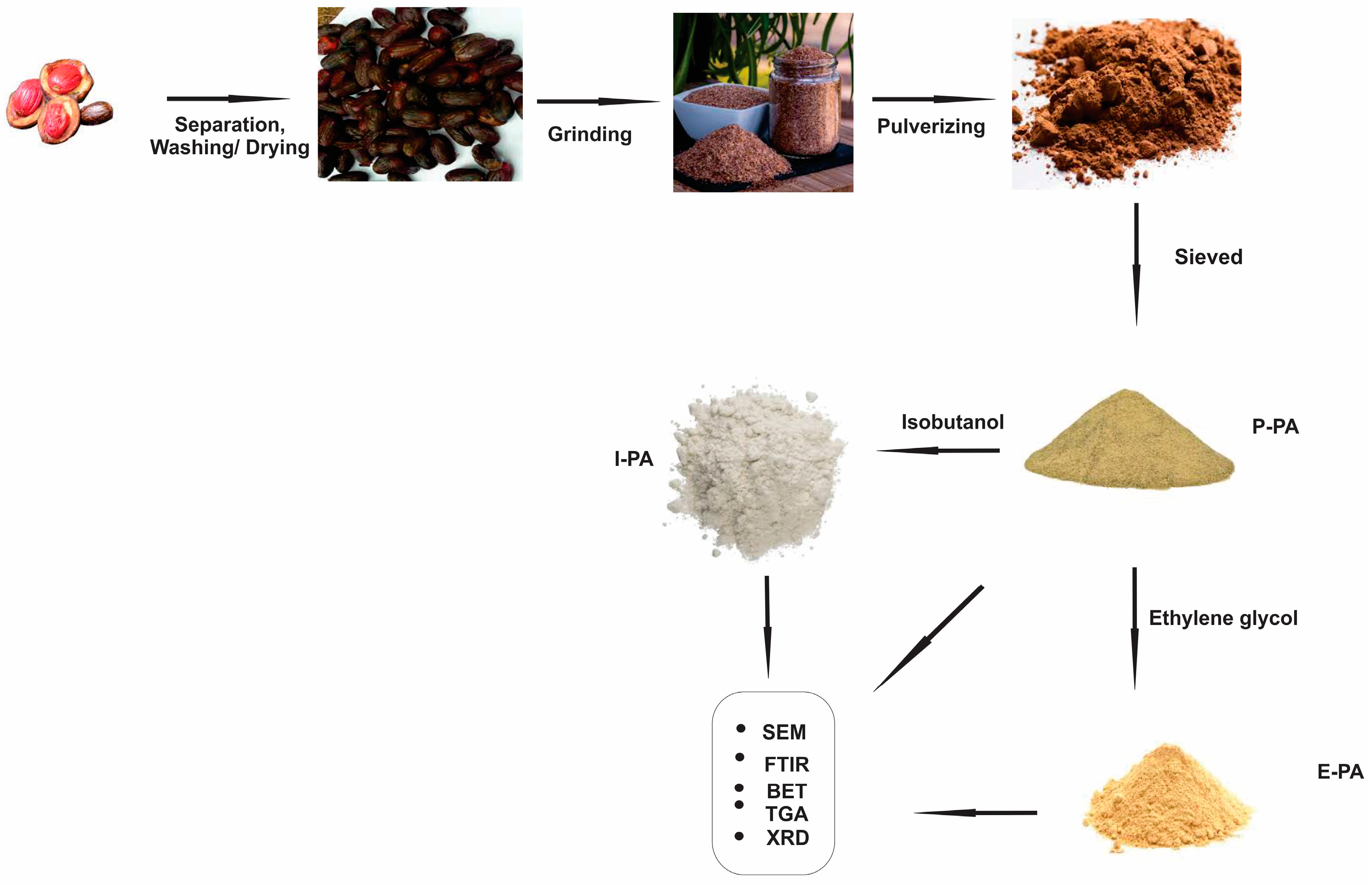 - Abugu, H.O.; Okoye, P.A.C.; Ajiwe, V.I.E.; Ofordile, P.C. Preparation and Characterisation of Activated Carbon from Agrowastes Peanut Seed (African Canarium) and Palm Kernel Shell. Int. J. Innov. Res. Dev. 2014, 3, 418–441. [Google Scholar]