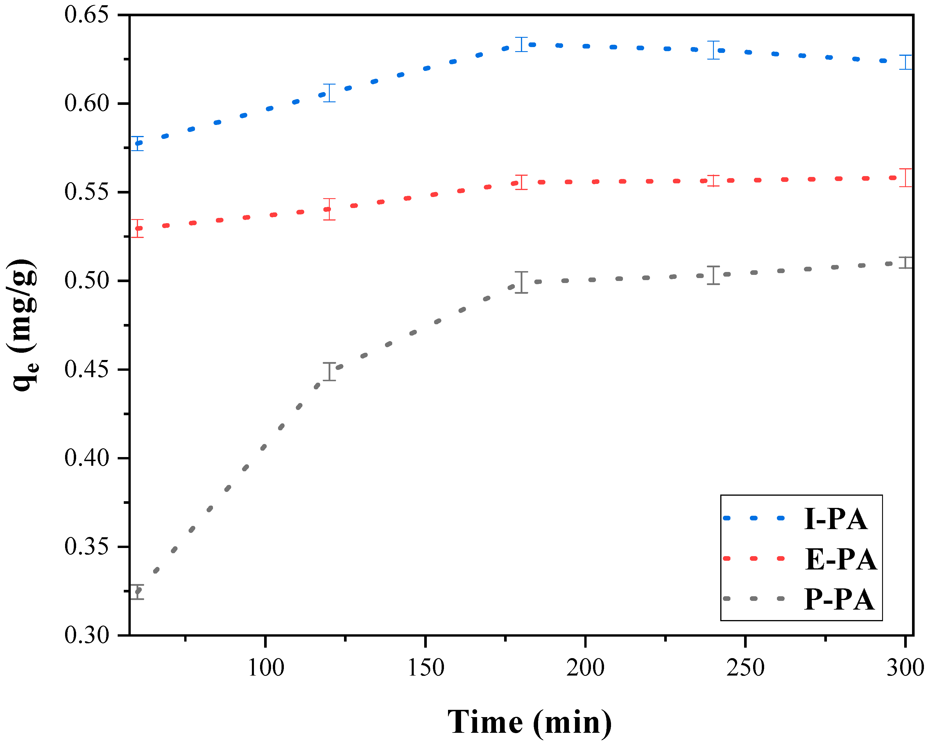 | Isotherm Model | Parameters | P-PA | E-PA | I-PA |