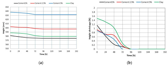 Additionally, Figure 7 demonstrates that the height shrinkage decreased as the drying time increased until the weight of the bricks remained constant.