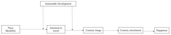 This study aimed to investigate the influence of a country’s sustainable development on visitors’ place likeability, intention to travel, and the country’s image. In addition, the author proposes that the country image concept leads to country attachment and happiness. Sustainable development is expected to become a vital construct that plays an important role in mediating the proposed relationship between likeability and intention to travel as well as the relationship between intention to travel and country image.
