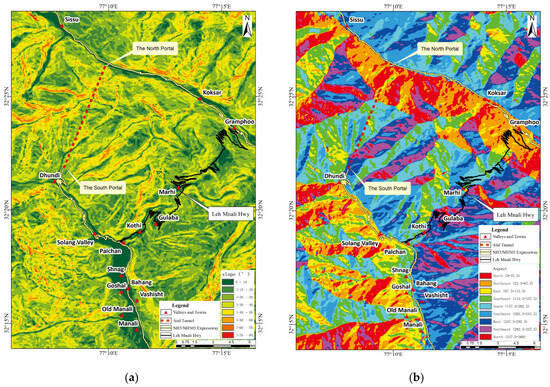 The study area features variable water conditions; it is drained by the Beas River, and its tributaries originate from several unnamed glaciers. The Beas River originates from the Beas Kund and is joined by streams originating from several hanging valleys. After cutting through a deep gorge with knife-sharp cliffs near Kothi, the Beas River then meanders between Kothi and the Rohtang Pass [49]. The tunnel’s north portal is located on the south bank of the Chandra River Valley, running to the northwest, whereas the south portal lies in the Solang River Valley, which is one of the tributaries of the Beas River (Figure 1). The sediments in this area comprise fine muds that are interrupted by coarse sands and conglomerates. An ancient moraine in the area forms a crescent-shaped longitudinal ridge, which is considerably preserved in the bed of the Beas River, to the west of Kulang [50]. Under certain circumstances, considering the complex geology and geomorphic conditions and extreme natural climate of the area, the region experiences frequent seismic activity and geological disasters, posing great challenges to the maintenance of operational safety. Considering the unique geological conditions, conducting a geological disaster susceptibility assessment is of paramount importance. Furthermore, it serves as an exemplary area for tunnel engineering research.