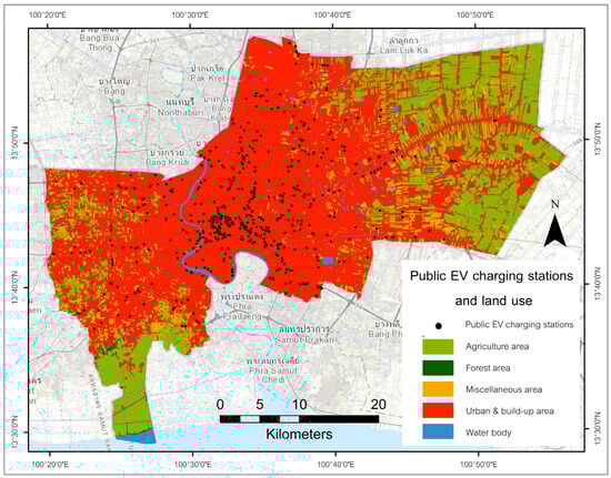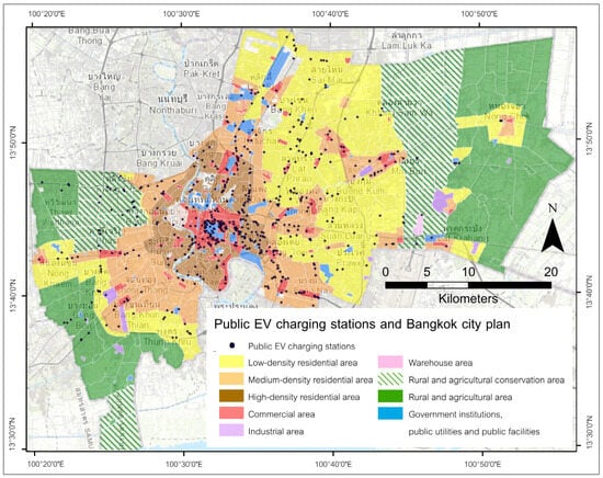 Distribution of charging stations by land use categories in Bangkok.