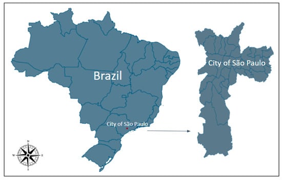 - IBGE, Instituto Brasileiro de Geografia e Estatística. São Paulo. 2023. Available online: https://cidades.ibge.gov.br/brasil/sp/sao-paulo/panorama (accessed on 16 November 2023).