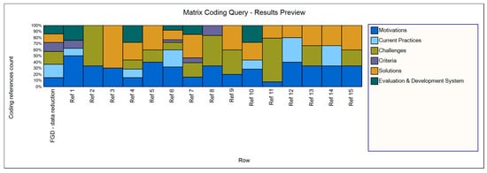 This section discusses the key themes identified across the various references, as illustrated in the matrix coding query shown in Figure 1. The analysis reveals six primary themes that are central to the discourse on green supply chain management: motivations, current practices, challenges, criteria, solutions, and evaluation and development systems. Motivations explore the drivers behind organizations adopting green supply chain practices, including regulatory pressure, market demand, and the desire to enhance corporate image. Current practices capture the strategies and methods organizations currently use, ranging from basic compliance with environmental regulations to advanced initiatives like green procurement and the use of eco-friendly materials. Challenges address the barriers to implementing green practices, such as the high cost of green materials, resistance to change, and the complexity of ensuring supplier compliance. Criteria focus on the standards used to evaluate and select green suppliers, emphasizing the need for a clear and consistent assessment of environmental performance. Solutions discuss strategies to overcome these challenges, often involving collaboration, technology adoption, and employee training. Finally, evaluation and development systems examine how organizations monitor and improve their practices over time, highlighting the need for robust systems to track progress and make continuous improvements. These themes provide a comprehensive understanding of the critical aspects of green supply chain management, offering valuable insights into the opportunities and challenges organizations face in their sustainability efforts.