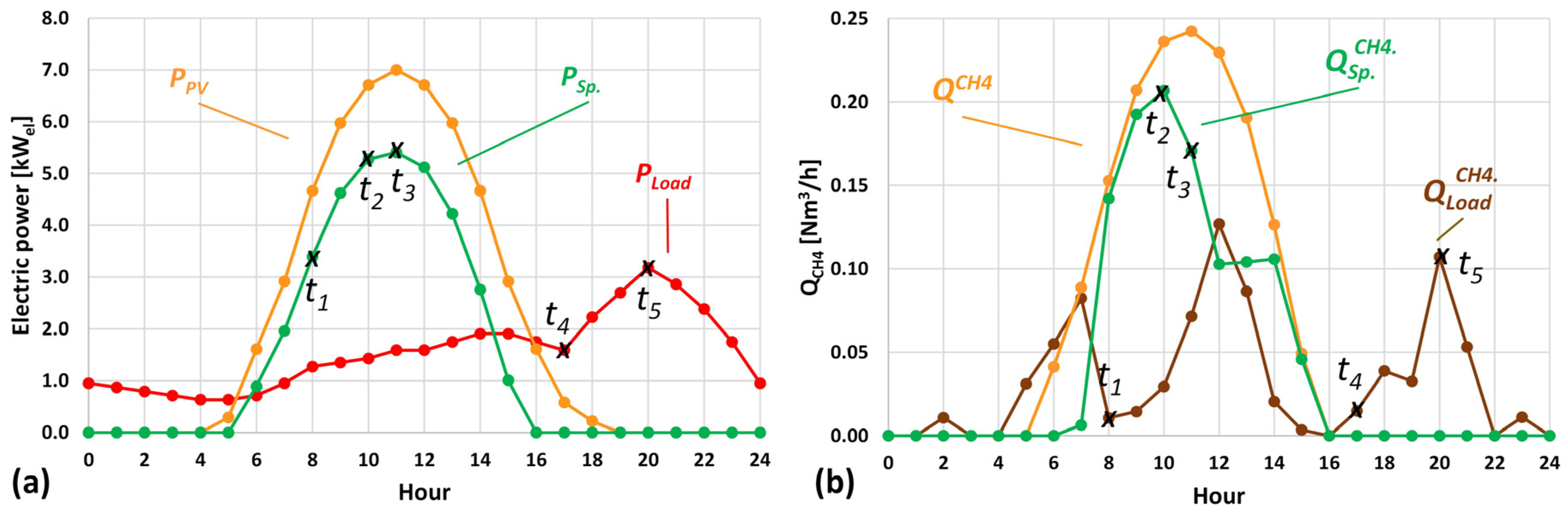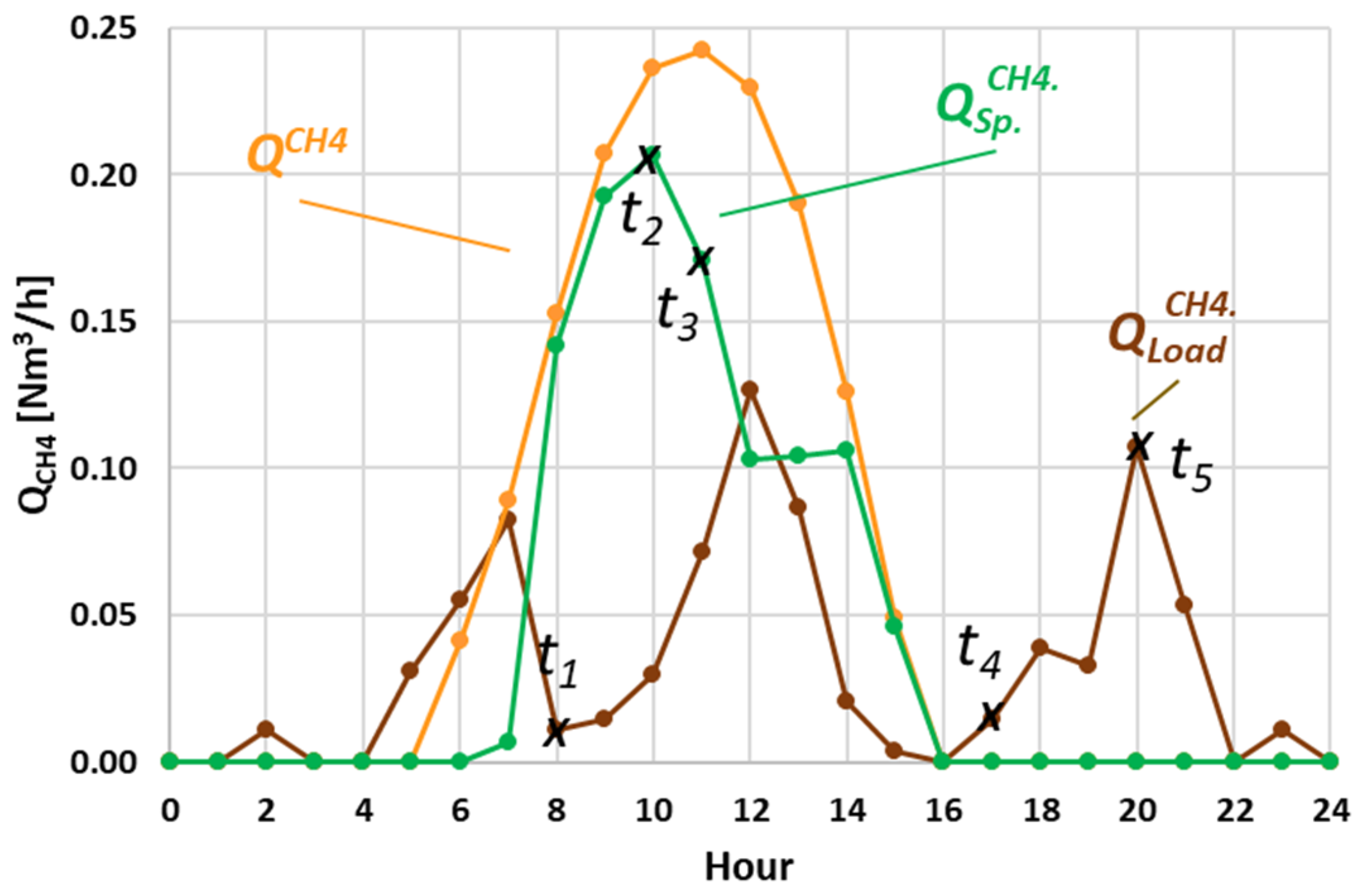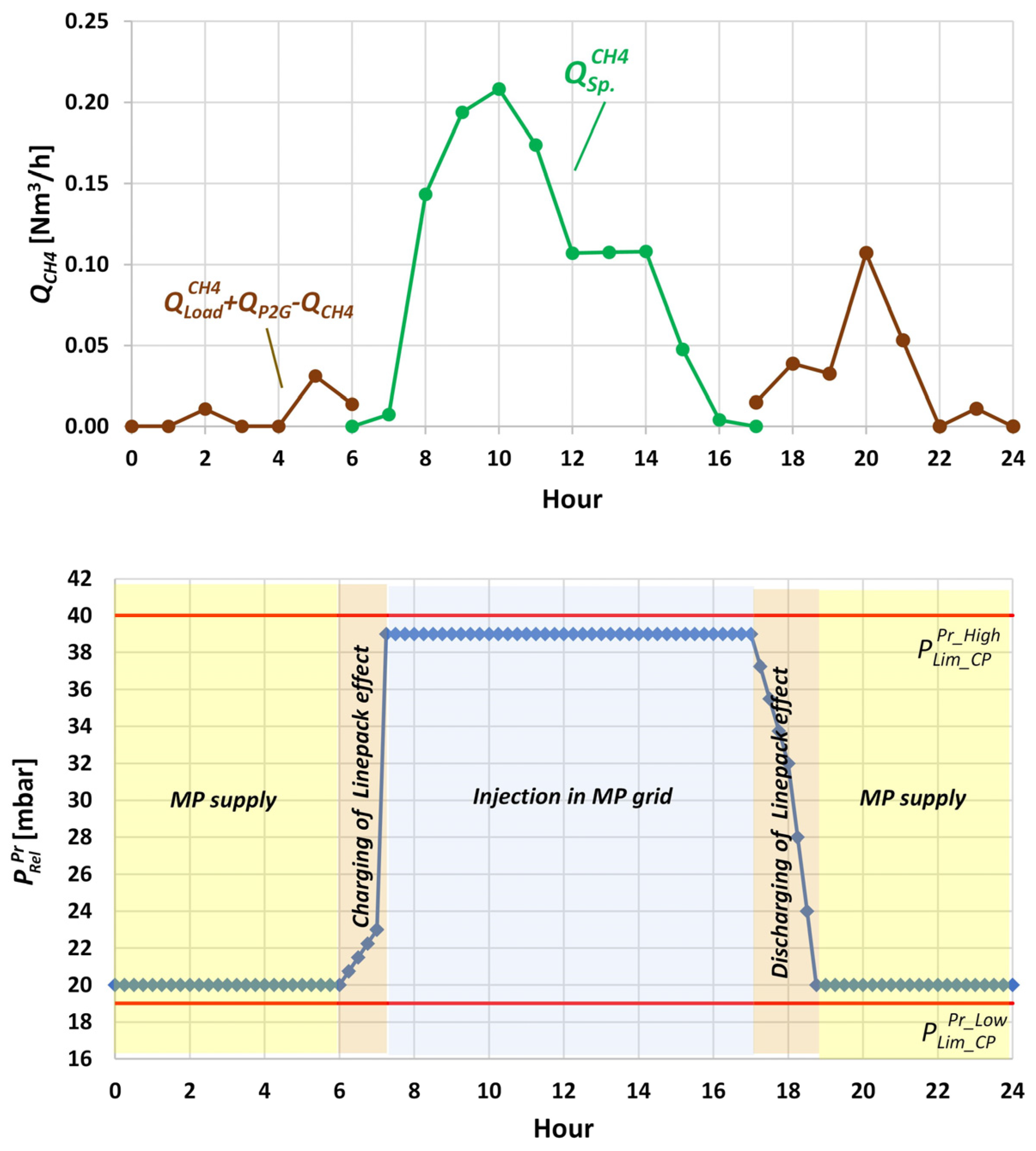 3.2.2. Injection of SNG Surplus into the Gas Grid