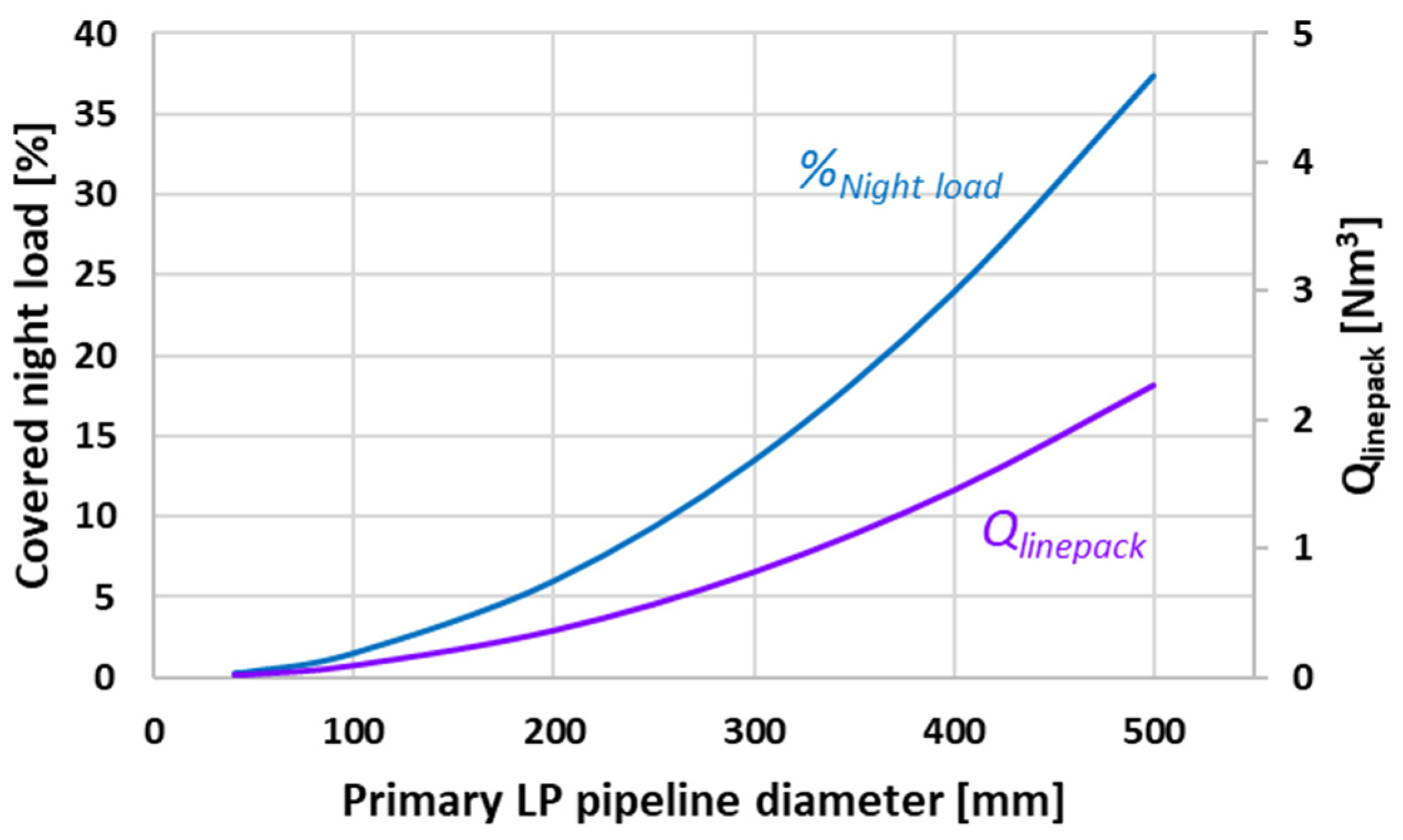 - SNG production is almost two times the gas load, but because of the non-simultaneous difference between production and consumption, the daily covered thermal load is 60%. Thus, 70% of the daily SNG production from each CP is injected back into the LP grid;