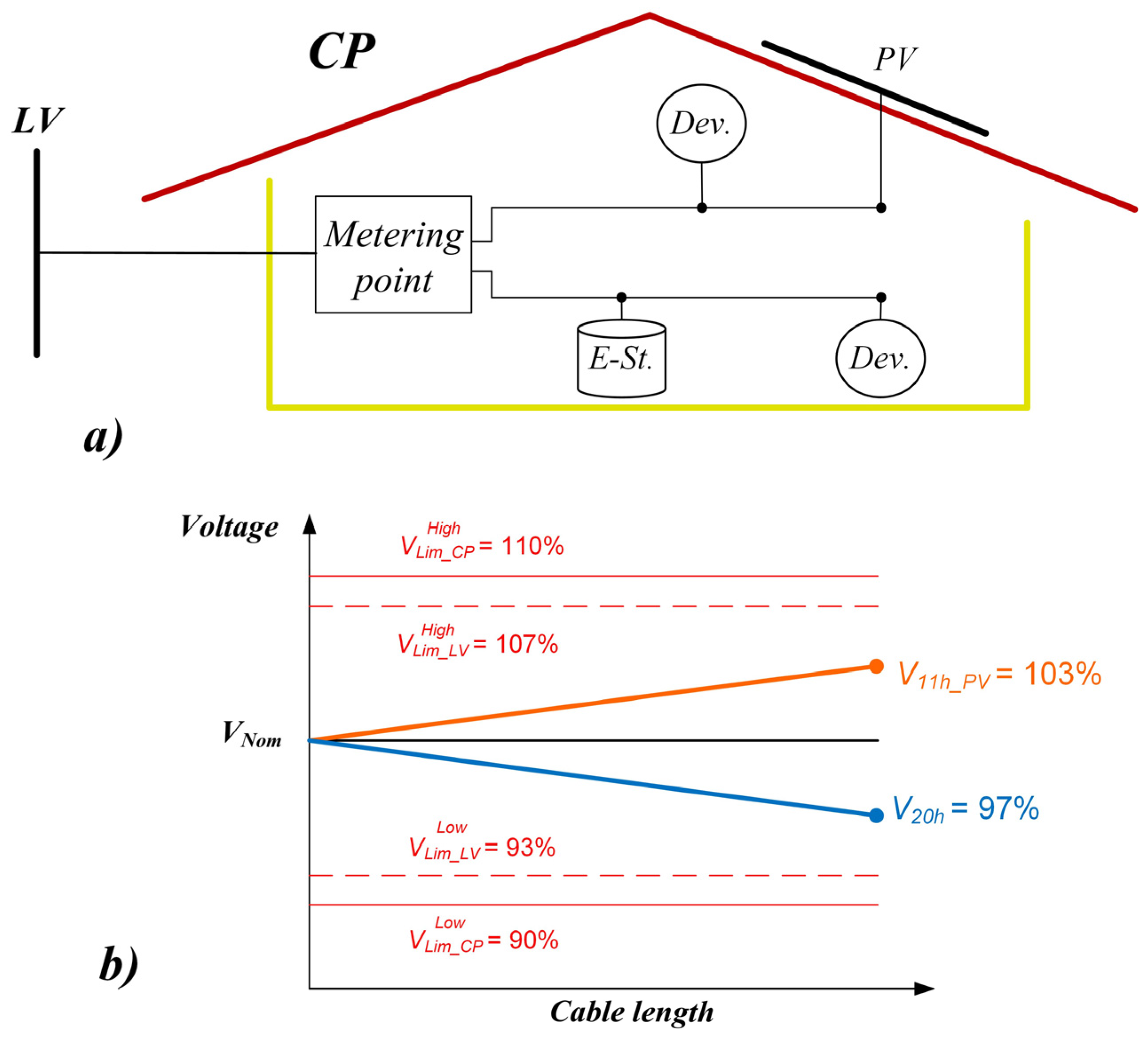 | Load | Active power Reactive power P, Q constant I constant Z constant Load electricity profile | QLoad CP,P; CP,Q CI,P; CI,Q CZ,P; CZ,Q - | 3 kW 1 kVAR 0.96; 6.28 −1.17; −10.16 1.21; 4.88 Residential |