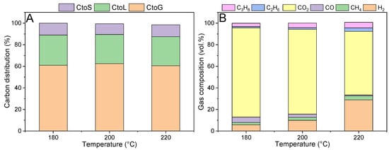 Similarly, the carbon to liquid (CtoL) and carbon to solid (CtoS) were defined (Equation (2) and Equation (3), respectively), to estimate the carbon distribution. The former was evaluated by TC analysis, while the latter was calculated by difference.