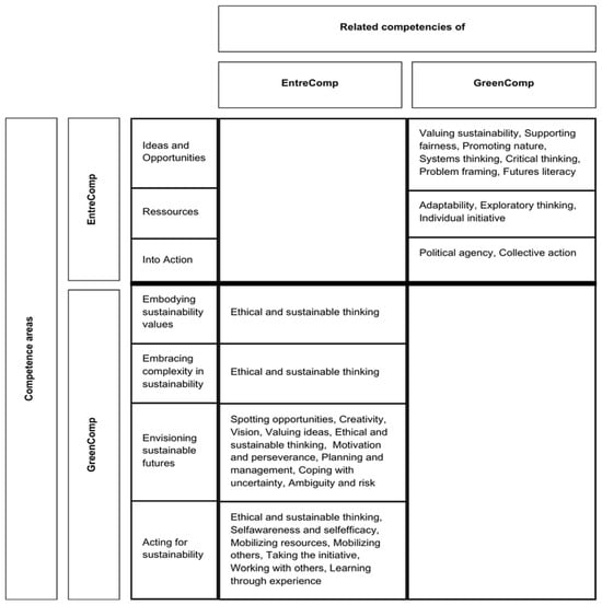 Mapping of competencies according to competence areas of EntreComp and GreenComp (created by the authors).