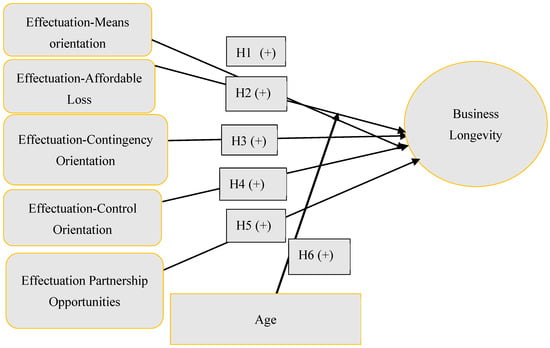 Affordable loss refers to the process through which entrepreneurs assess the potential worst-case outcomes of their actions and establish the extent of loss they are willing to bear []. This concept encompasses various dimensions, including opportunity costs, the loss of time, attention, commitment, or financial capital. Accordingly, entrepreneurs adopt a prudent approach, ensuring that they do not commit more resources than they can reasonably afford to lose []. This approach is particularly relevant for entrepreneurs in uncertain environments, such as developing countries [] and disaster recovery situations []. EAL encourages entrepreneurs to estimate what they can risk and determine their willingness to lose in pursuing a venture []. It extends beyond economic considerations to include social losses like status and reputation []. The principle is closely linked to other effectuation concepts like flexibility and pre-commitments []. While the EAL principle is generally associated with effectuation, some research suggests it may have a prevention focus, potentially negatively impacting entrepreneurial orientation []. Understanding and applying EAL can foster resilient entrepreneurial strategies and aid in decision-making in dynamic markets []. In the context of internal displacement, women entrepreneurs are often forced to operate in highly precarious conditions with limited access to resources and safety nets. The affordable loss principle allows them to start and grow businesses without exposing themselves or their families to excessive operational risk. By only investing what they can afford to lose, these women increase their chances of long-term business survival. The iterative nature of the affordable loss approach enables them to learn from small failures, recalibrate, and continue operating, which is crucial in an unpredictable and resource-scarce environment. This approach not only aligns with the experiences of displaced women but also allows them to assess opportunities in a manner that mitigates financial risks [] while focusing on the longer-term goal of sustaining their business and supporting their families. Based on the foregoing discussion, this study proposes the following hypothesis: