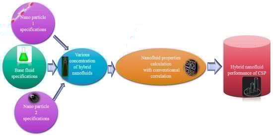 In general, the thermal conductivity of nanofluids is determined by experiments or simulation models as well as from correlations, where the thermal conductivity of the selected working fluid is calculated by an empirical correlation based on temperature, volume fraction, and particle conductivity [].