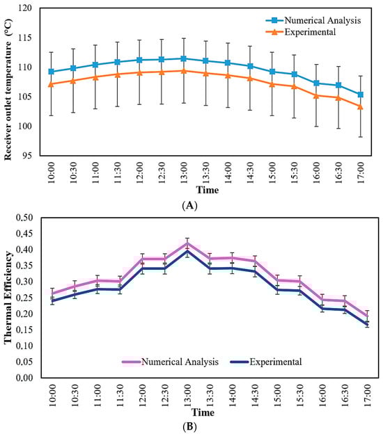 β1, β2, β3, …, βn are the uncertainties in the independent variables, and βR is the total uncertainty in the results. R is a function of the independent variables x1, x2, x3, … xn. The maximum uncertainties of the solar radiation and oil flow rate calculated previously in the current system are 0.5% and 2%, respectively. The uncertainty of the system elements is given in Table 4.