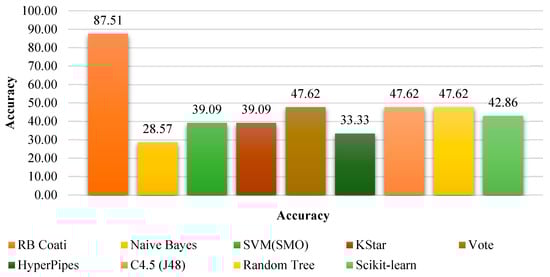 Compares the accuracy performance of the proposed RB coati method and some popular machine learning.