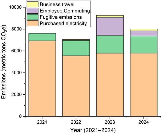 Materiality evaluation followed a two-step process: first, identifying emission sources contributing more than 3% of the total organizational footprint; and second, applying expert judgment to include additional sources with high policy relevance or mitigation potential, even if their current share was smaller [,]. Significant categories identified through this process were prioritized for enhanced monitoring, targeted data quality improvements, and, where applicable, third-party verification to ensure the robustness and credibility of the inventory [].