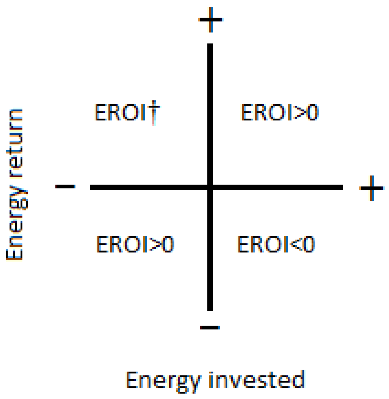 To complete the picture, it should be noted that there are also the situations where the investment cost is negative and where the energy return is also negative. This situation is symmetric with the classical EROI and is treated the same way. These situations are described in the following diagram (Figure 1).