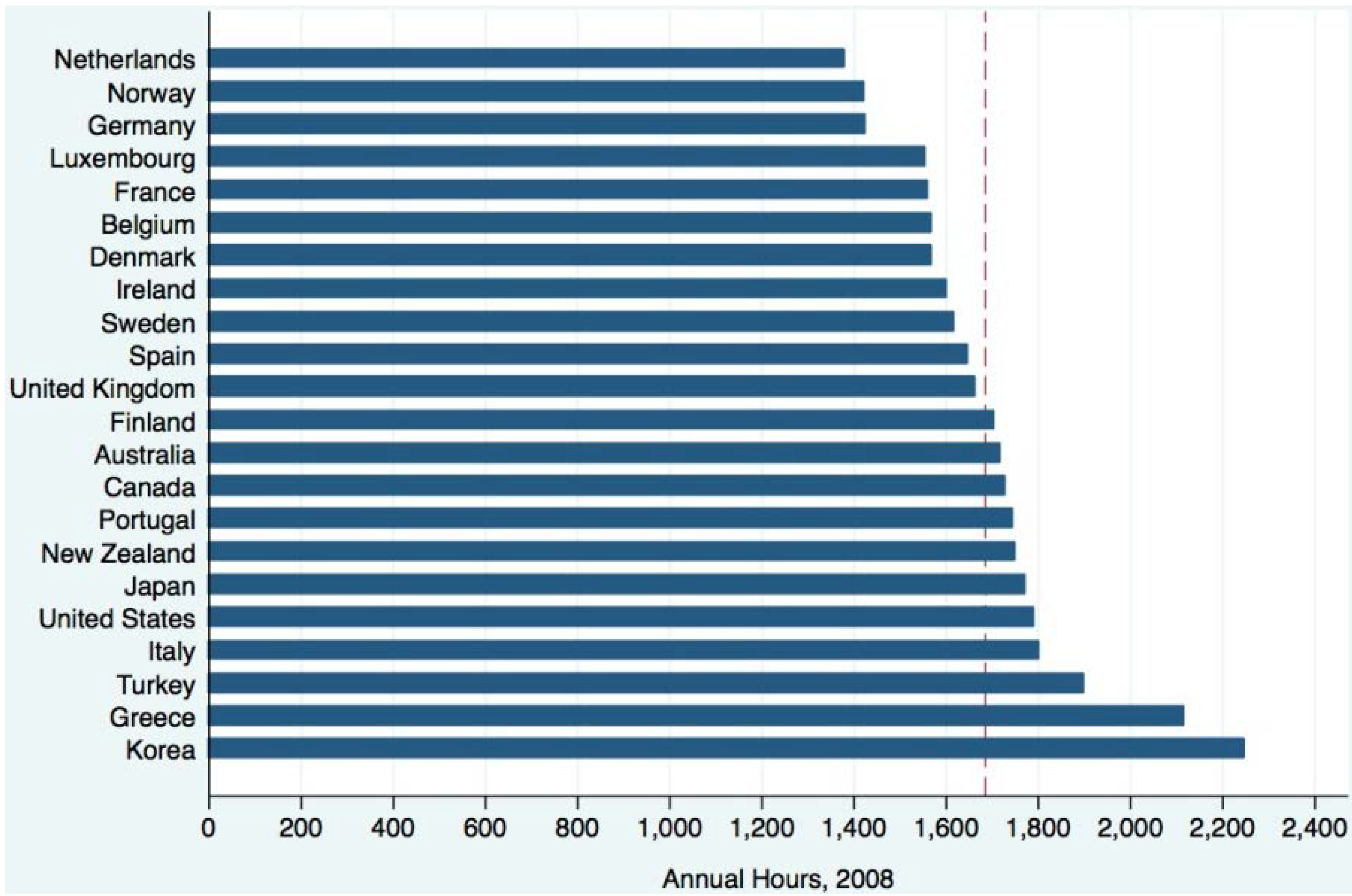 Working hours in the OECD, 2008 (Data: OECD Stat).
