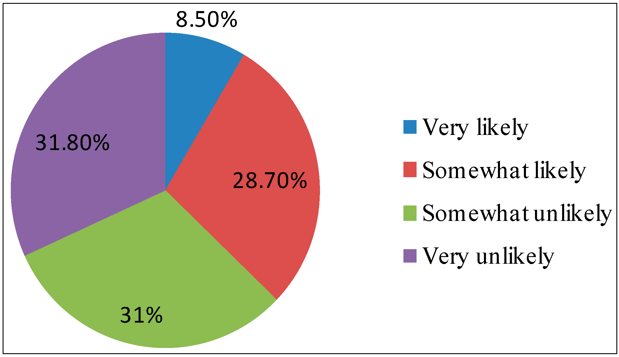 Although the Chinese government has spared effort on making planning and policies to cultivate EV industry, the problem of customer acceptance of EV still exists. This problem is also faced by other developed countries. A survey about EV industry development in the US was conducted by the Zpryme research and consulting company in December 2010 among 1046 U.S. drivers aging 18–65 to assess their overall interests in EV, key reasons to purchase EV, and charging preferences [23]. Figure 4 indicates that most of the American latent customers do not plan to buy an electric vehicle in the near future. In addition, the survey of EV industry in China (based on Nielsen Company study) illustrates that about 11.02% of consumers intend to buy EV, and 18.33% are likely to buy HEV. The results from two countries are very similar.