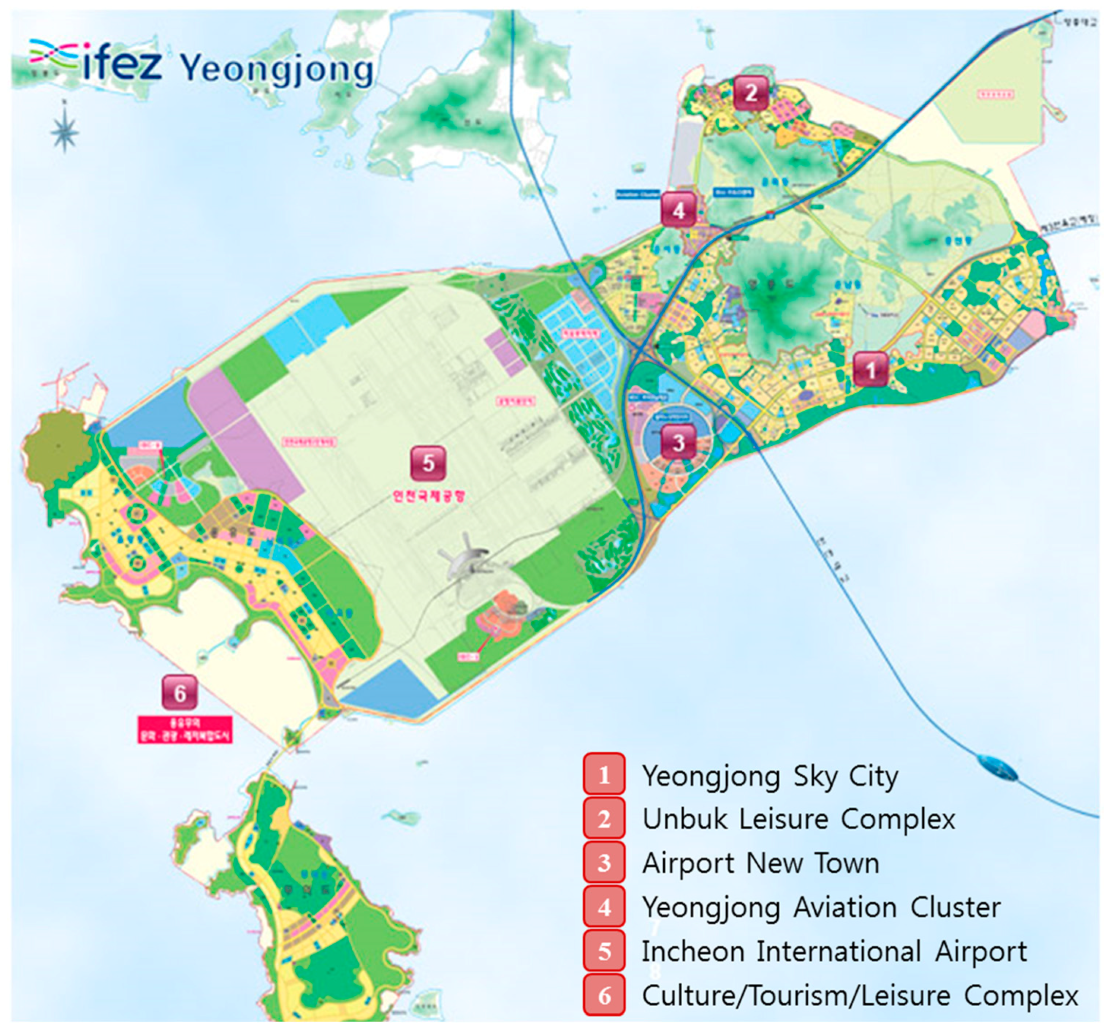 - Incheon Free Economic Zone’s official website. Available online: http://www.ifez.go.kr/eng/en/m3/yj/screen.do (accessed on 10 January 2015).