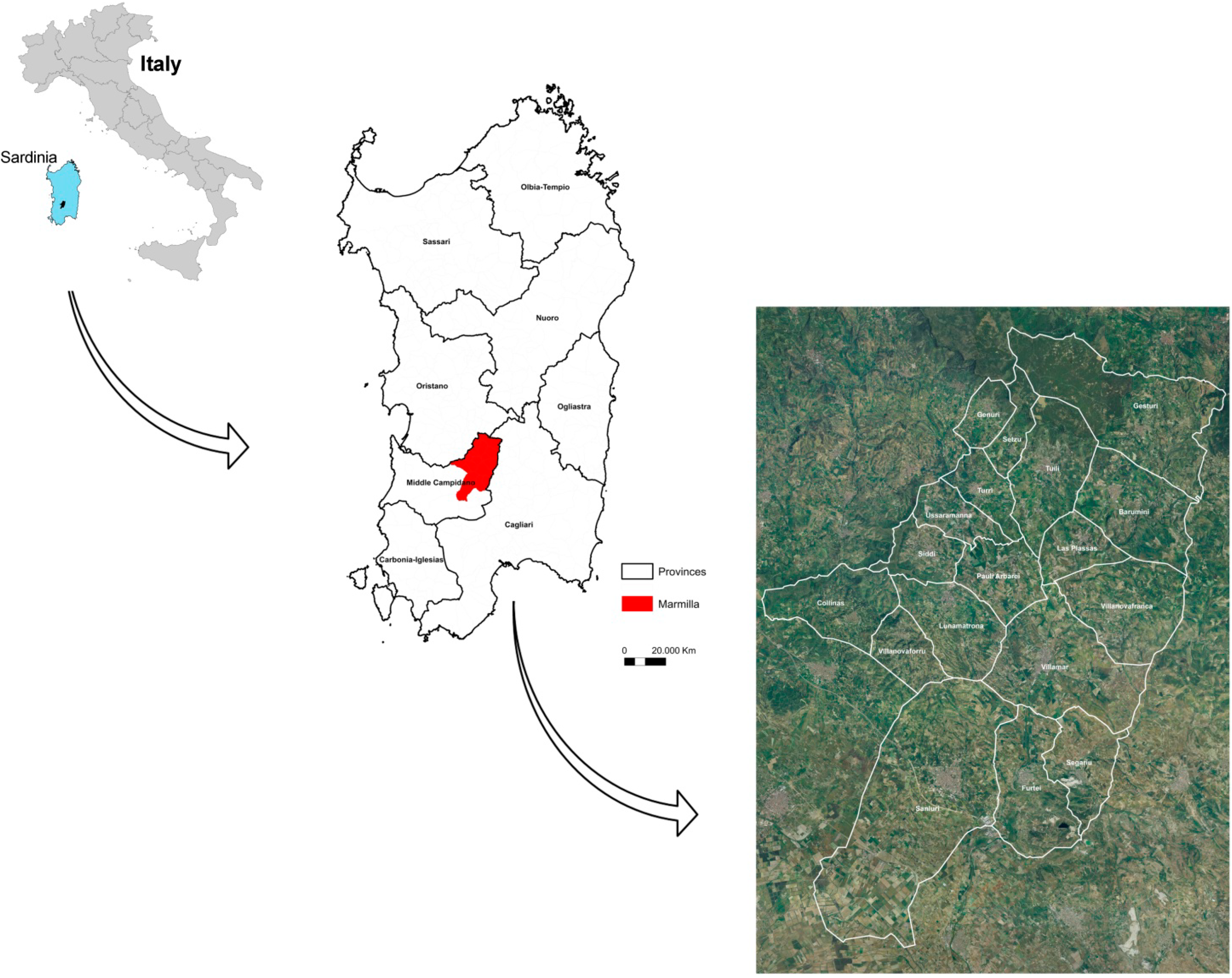 Based on the preceding information, the question that arises is how to initiate a sustainable tourism approach for an agricultural destination that does not yet have a strategic planning and management approach for its tourism sector. We begin this research by analyzing Marmilla’s rural and natural landscape, as well as its cultural and historic heritage. Doing so allows us to understand the extent and value of Marmilla’s cultural and environmental aspects. Next, socio-demographic and production supply and demand dynamics are analyzed, to help delineate an appropriate strategic policy for place-based development and tourism planning. Finally, using different scales, the application of direct and indirect governance instruments as they might affect the development of tourism and environmental protection in the Marmilla context are analyzed. These analyses reveal that a successful strategic planning and management approach for Marmilla depends primarily on social capital. Indeed, awareness of local administrators regarding their roles and the potential of a strategic approach to systemic and sustainable rural tourism will provide the conditions needed to improve the attractiveness (and therefore also the place-branding) of the cultural and natural heritage, and make a significant contribution in terms of political cohesion, identity and local development. In this regard, it has been observed that the role of technology can be crucial to the debate on governance for sustainable tourism in rural areas. Indeed, Go, Della Lucia, Trunfio, and Martini (2014) state that there is the need for a link between “two broad knowledge domains, ICTs and place branding [of rural contexts], often isolated from one another” [34]. Tying these two aspects does not delegate to rural areas the characteristic of “sustainable place”, but offers them the opportunity to have a voice, visibility and place-based development in the era of globalization [34]. In addition, it captures the need to overcome certain structural limitations, creating, for example, a “system of rural areas”: especially in Marmilla, a recent study showed that four of its 18 municipalities (Genuri, Tuili Turri, and Ussarramanna) are at risk of demographic desertification [35].