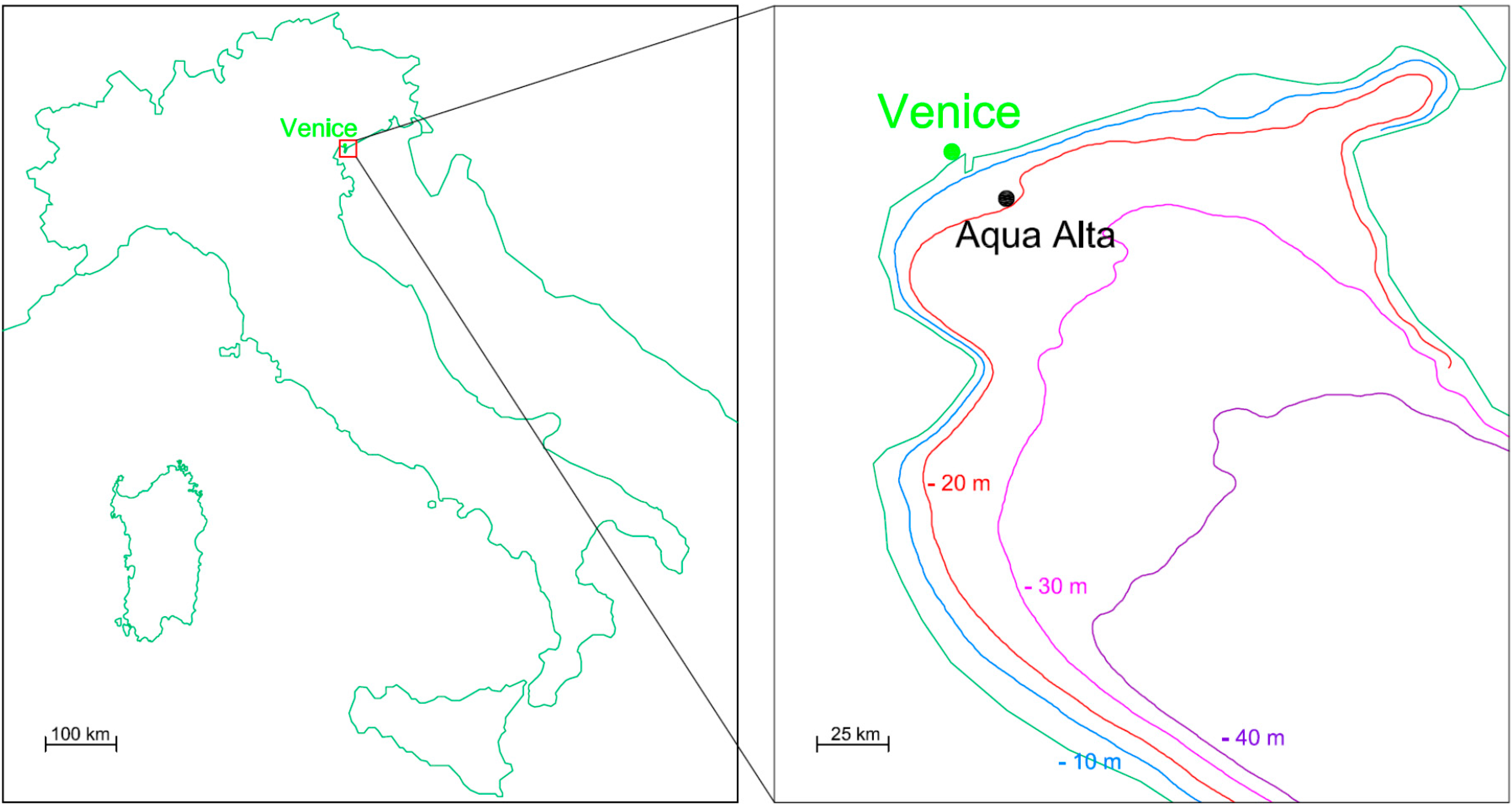 The selected area for this hypothetical installation is the Northern Adriatic Sea, East of Italy, and specifically offshore Venice coastline. The area is characterized by the following challenging features: