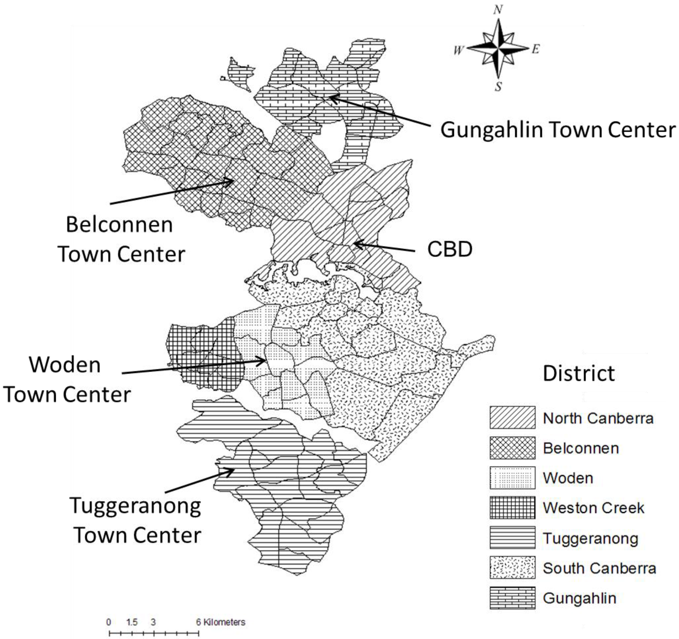 Districts in Canberra (map created by the first author) Source: Australian Bureau of Statistics Census Statistical Division 2011.