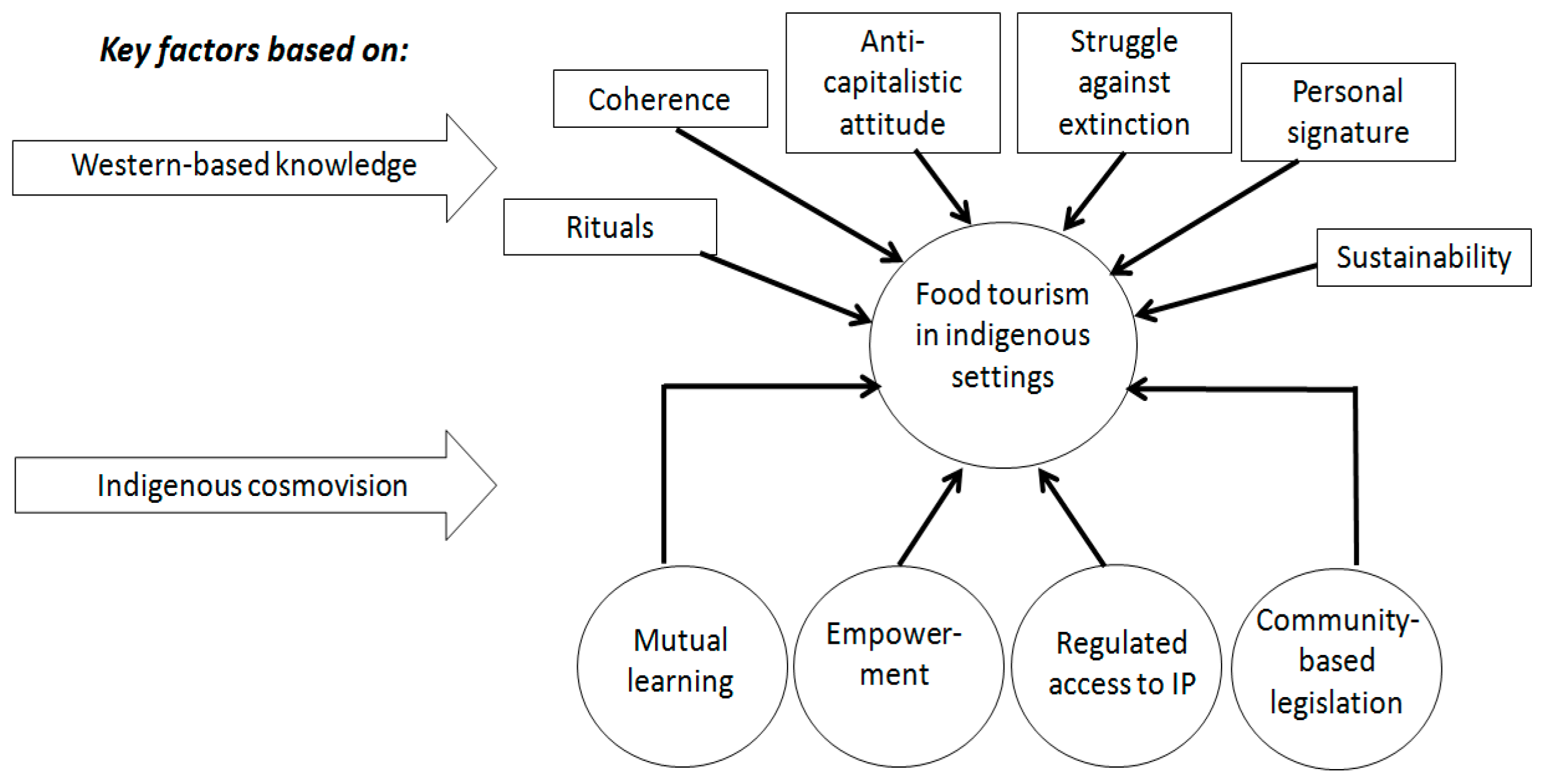 Furthermore, Western-based factors of food tourism derived by the experience-intimacy approach have been detected also in indigenous settings. However, the study reveals the importance of integrating these factors with the peculiarities of indigenous cosmovision, such as the active promotion of mutual learning, community empowerment, restricted access to intellectual property (e.g., ancestral knowledge), and community-based legislation. Taking everything into account, the study reaffirms the importance of food tourism worldwide, and at the same time it deepens the understanding of indigenous expectations towards this tourist field in emerging countries.