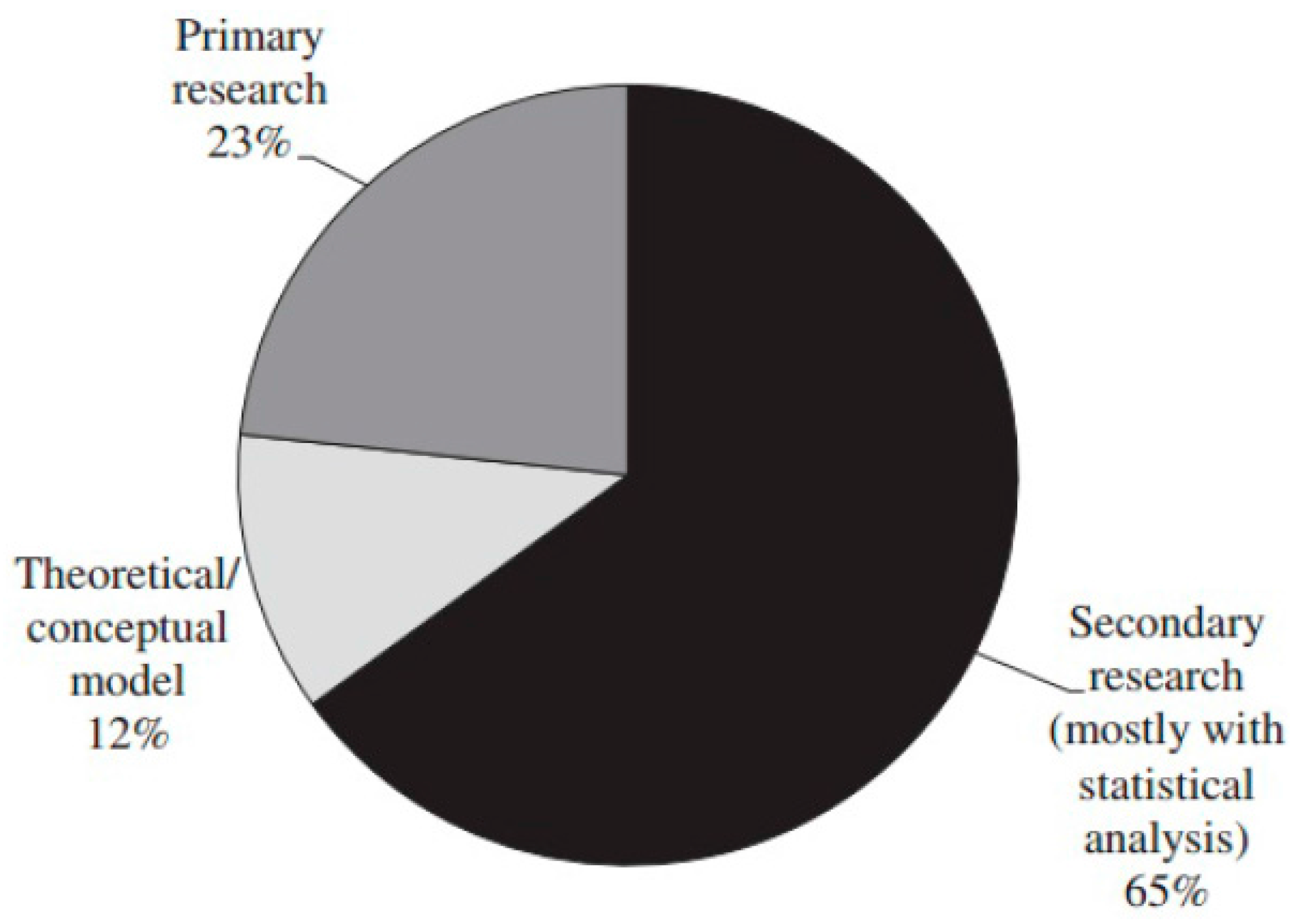 Air transport performance status is usually obtained based on primary [13,14] and secondary [15,16] data. Graham [17] illustrated that “two-thirds of articles had at least some quantitative data to support the arguments, and the statistical techniques used to analyze the data ranged from simple percentages, ratios and indices to more complex regression and econometric models”. Figure 1 indicates that 65% of studies applied statistical analysis in their approaches.